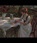 1988年 日本初来日展。画面いっぱいに溢れる花々と装飾品で構成された心地よい空間は観る者をファンタジーの世界に誘います。 20年来の厚いファン層の支持は燃え尽きることなく、彼の新作を待ち続けています。